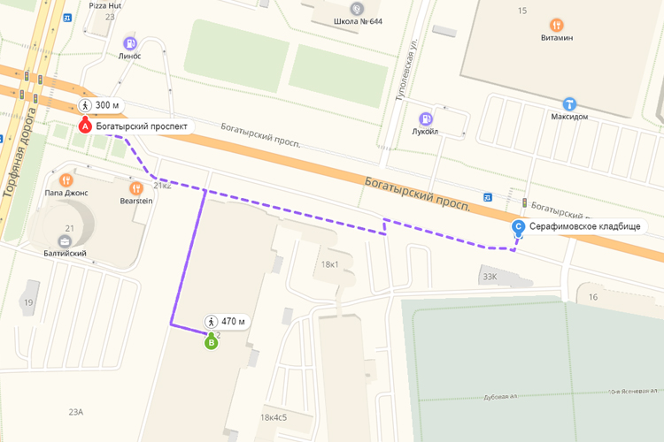 Остановка: «Серафимовское кладбище» или «Гаккелевская (Богатырский проспект)»