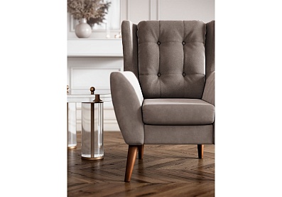Кресло Ладога, Д1 (опоры: клен старый) Светло-серый (Velutto 12), Велюр