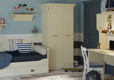 Шкаф Кантри с полкой и штангой для одежды Блан шене