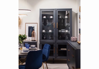 Шкаф Чарли с витриной (правый, со шпонированными полками) Серый агат