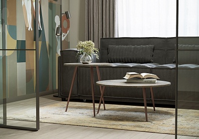 Комплект журнальных столов Лесло Дуб янтарный, Черный МДФ