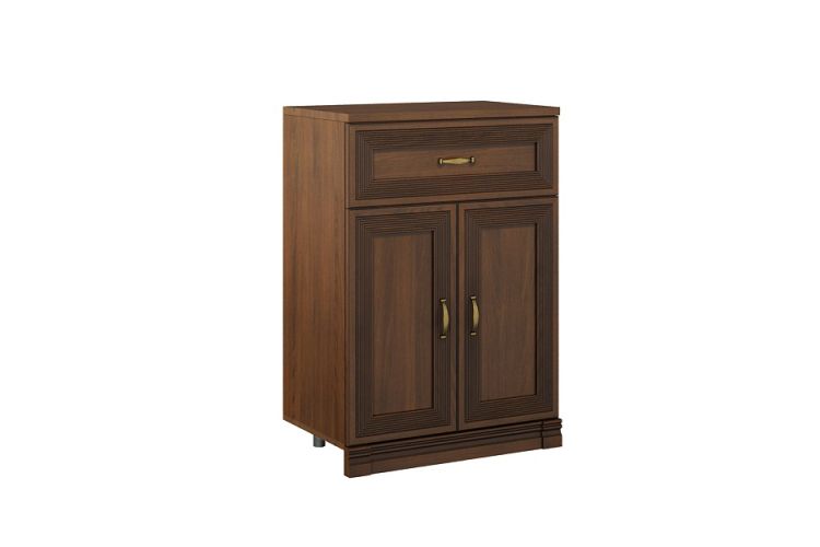 • Тумба с выдвижным ящиком и полкой ЛДСП за распашными фасадами;