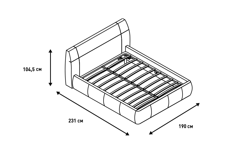 – описание: стиль современный, минимализм, назначение для дома, для спальни, цвет давос трюфель, размер 104.5x190x232 см.