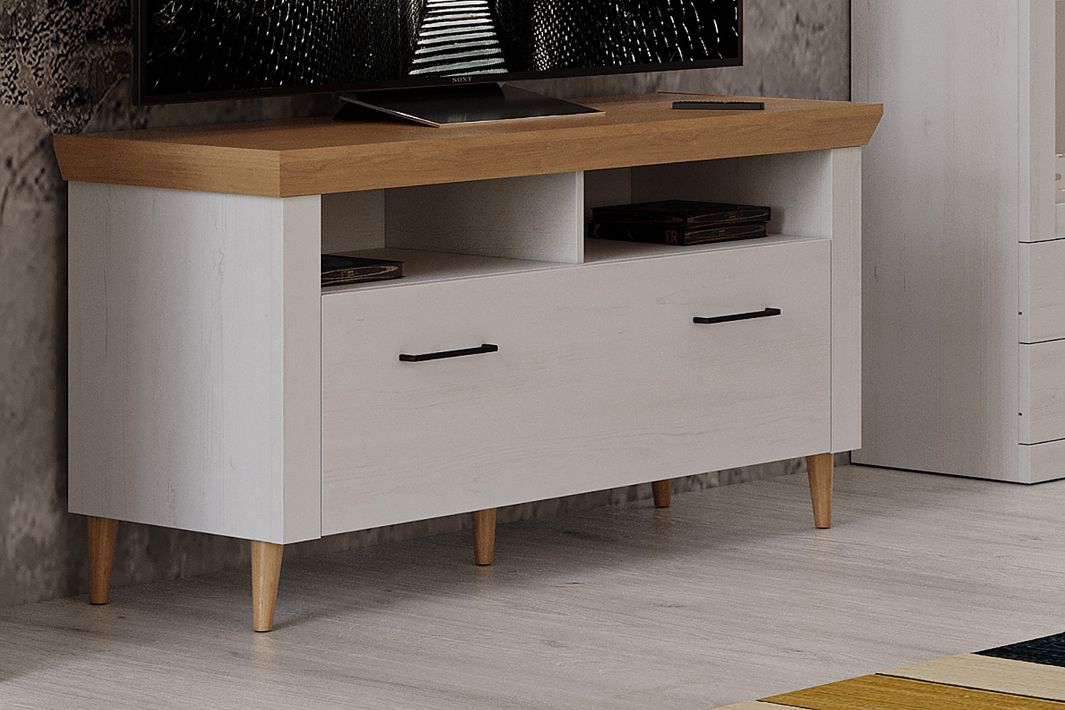 Я их купила две, но не под ТВ, а в детскую. Потому что этот вариант прочный, устойчивый, и смотрится нарядно. И вместительный - куча игрушек вошла, ещё и место осталось. А потом эти тумбы отлично сгодятся, когда сынуля подрастёт, вид у них солидный. Единственное, что смущает - пятая ножка, вечно про неё забываю во время уборки и натыкаюсь рукой. Но это мелочи.