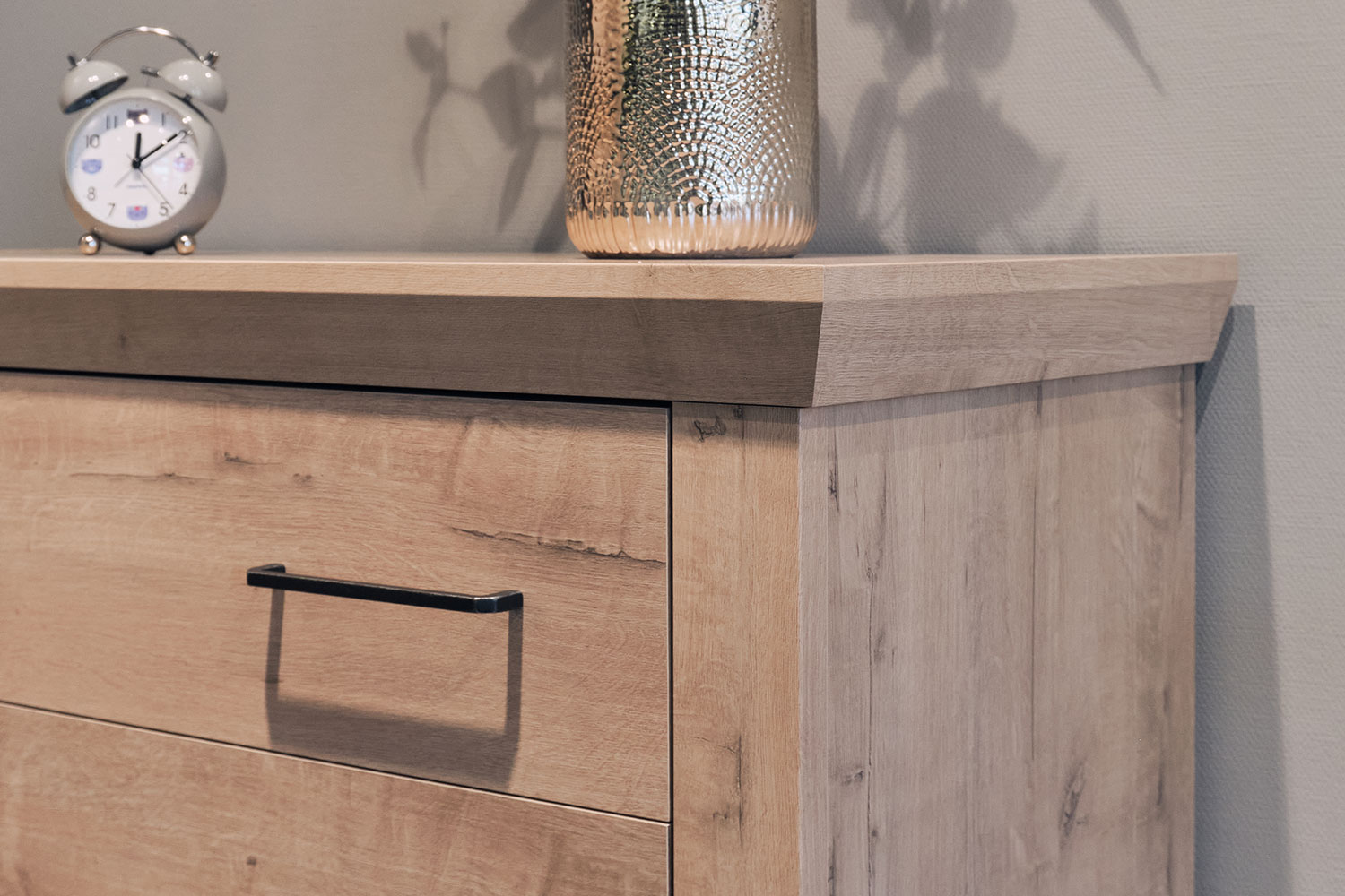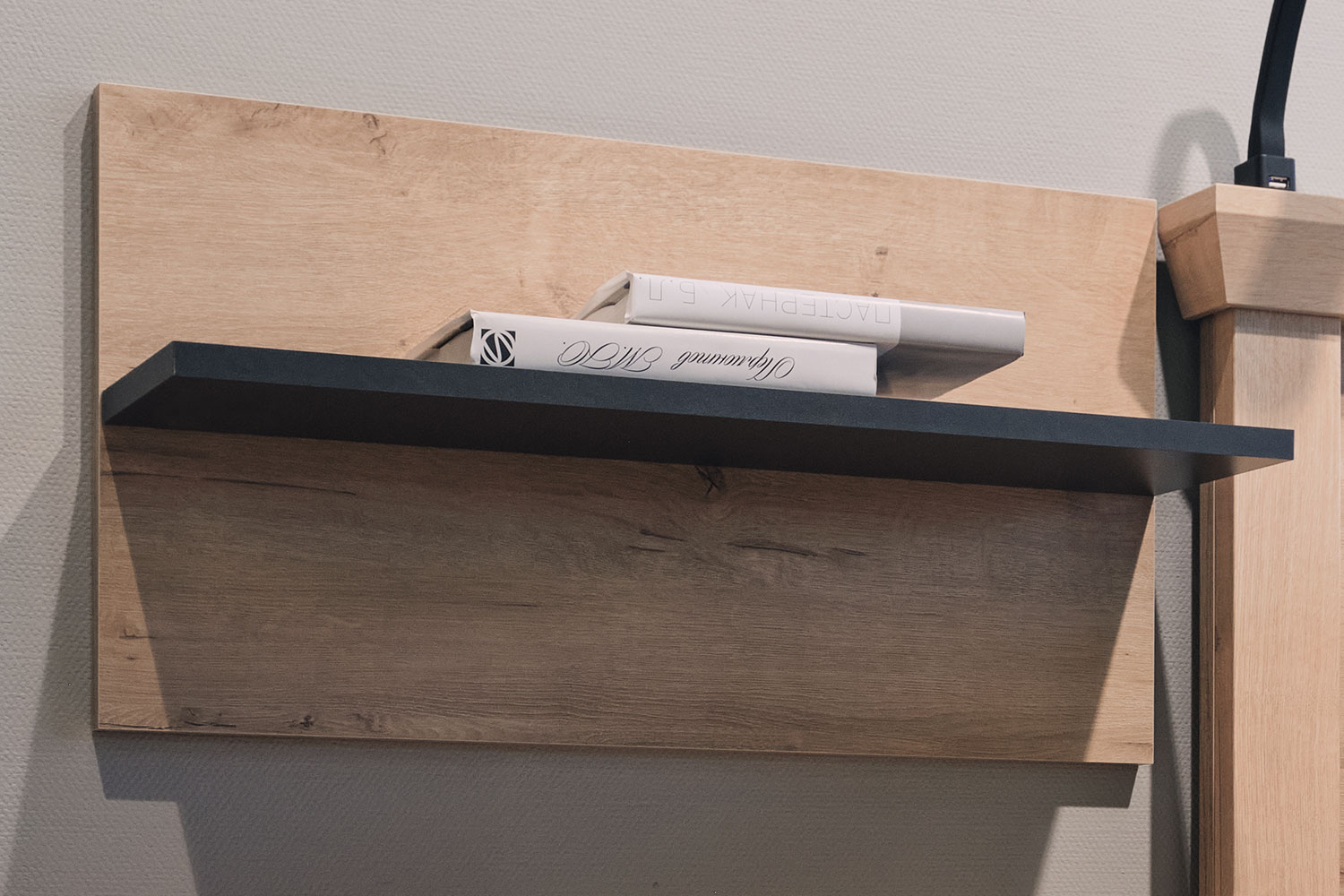 - Корпус мебели и фасады выполнены в цвете «дуб бунратти»;