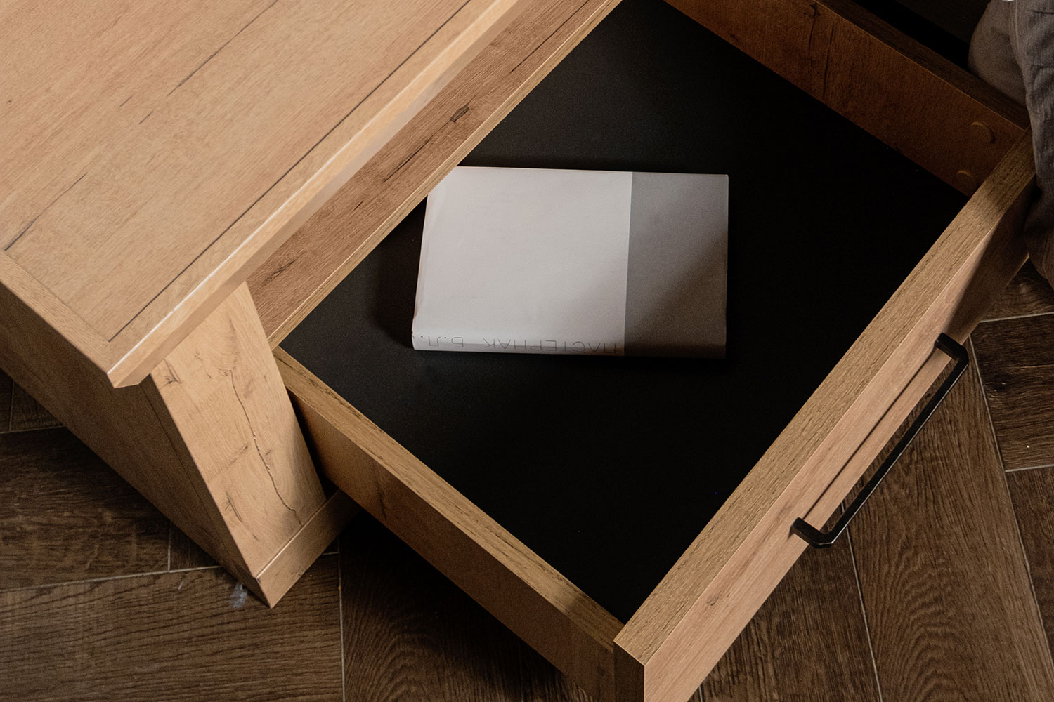 - Цвет задних стенок и дна ящиков: «черный графит»;
