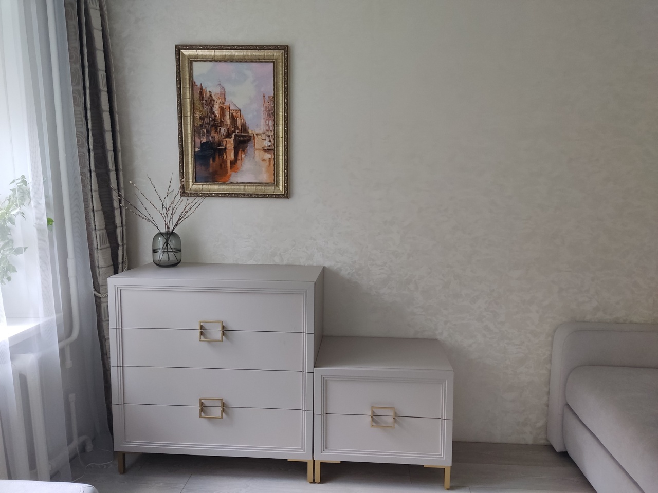 Комната выглядит прекрасно!!! Комод, тумба, столик – все сделано аккуратно и, я бы сказала, с любовью. Сдержанно, благородно, дизайнерам – браво!.
