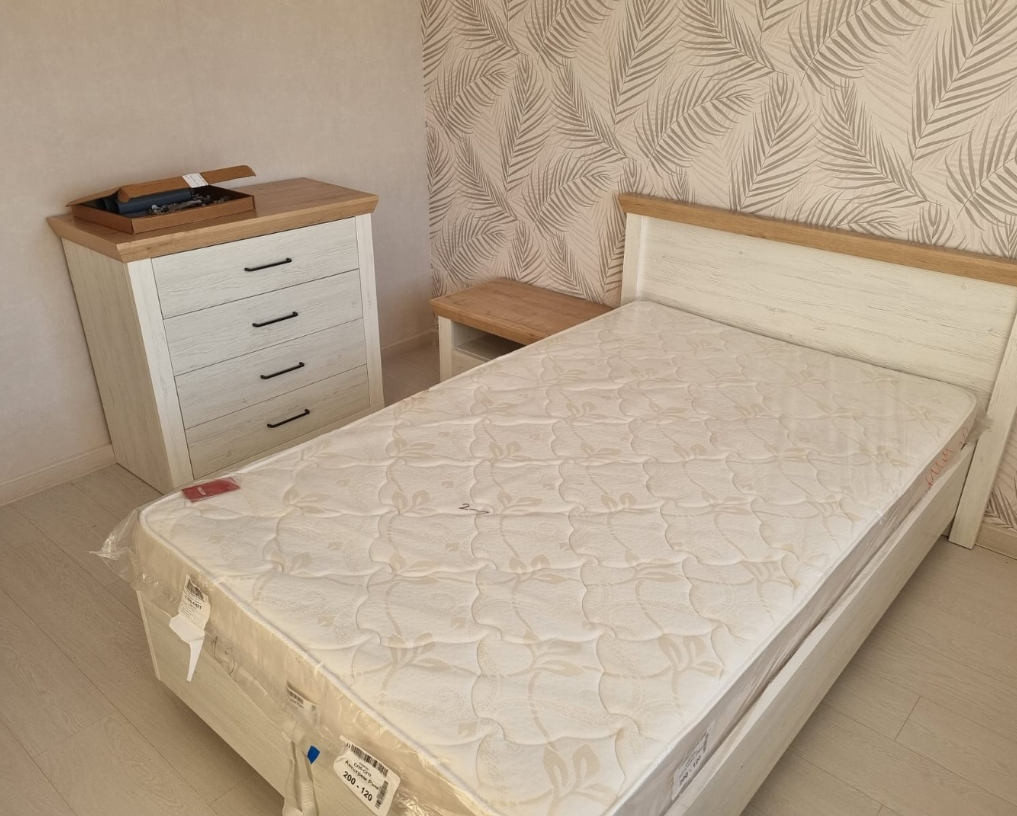Односпальная кровать 120 х 200 см с корпусом, окрашенным в благородный оттенок блан-шене, будет отлично смотреться в интерьере спальни в стиле классика, облегченный лофт, сканди или фьюжн. Сочетание базового белого тона с теплой древесной текстурой создает атмосферу покоя и уюта, а декор в цвет дерева «дуб бунратти» разбавляет однородные поверхности.