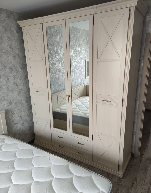 • Для хранения в спальне есть большой шкаф с двумя зеркалами. Поэтому можно увидеть свой образ сразу после переодевания, не выходя в ванную или коридор.