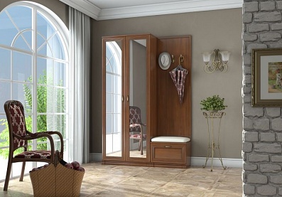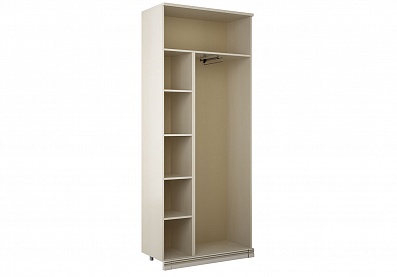 - Широкое отделение за одним глухим и одним зеркальным фасадами. В верхней части — полка и штанга для одежды;