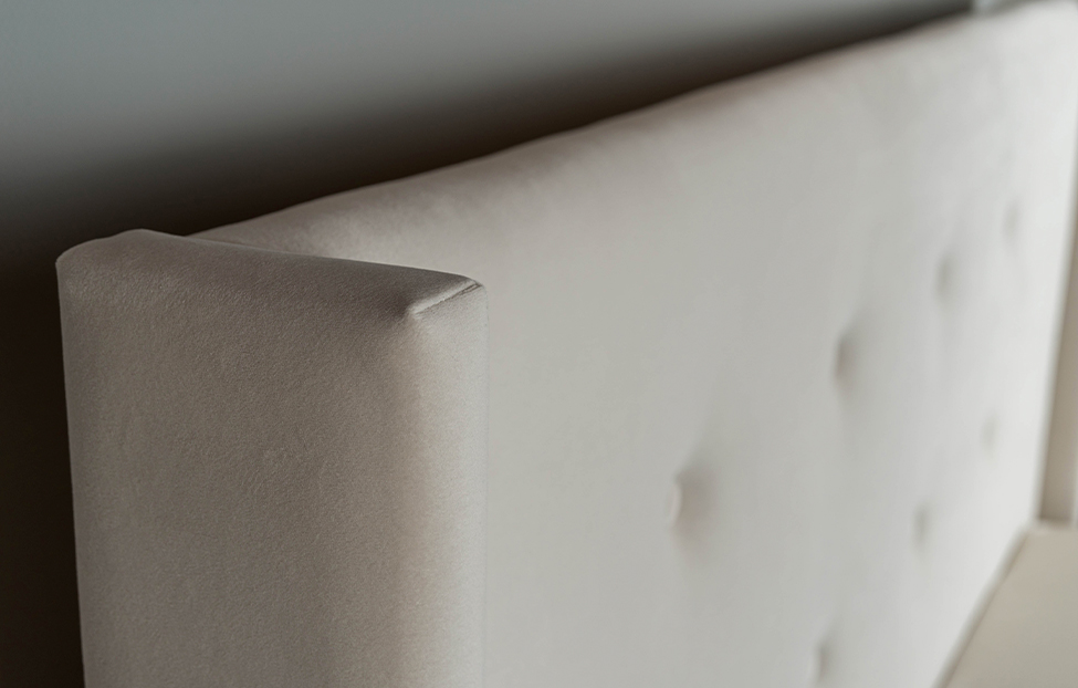 Микровелюр отличается устойчивостью к износу и истиранию, высокой прочностью и долговечностью, а также простотой в уходе. Лаконичное оформление разбавлено декоративными пуговицами и выступающими элементами изголовья. Отделка универсального ярко-серого позволяет вписать кровать практически в любой интерьер.