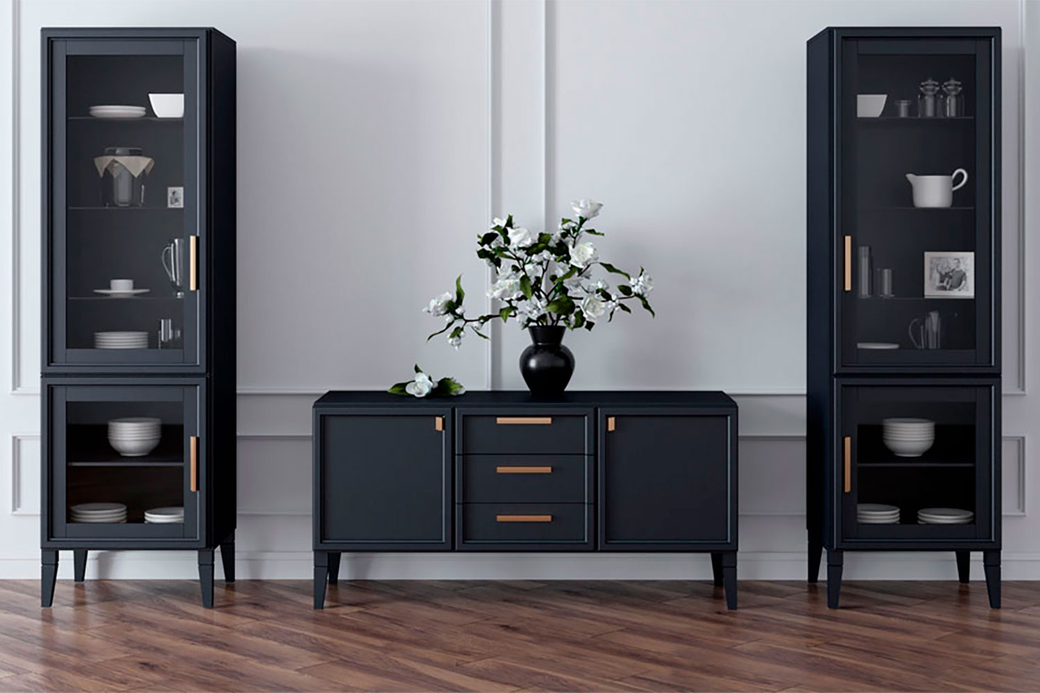 Такую стильную мебель приобрела для гостиной. Она выглядит строго и статусно, по размеру компактная, но вместительная и функциональная. Сочетание цветов удачное, за счёт этого простые по форме шкафы и тумба смотрятся выигрышно. Ящики достаточно глубокие, шкафы отлично подходят для размещения в нём посуды и всяких мелочей. Мебель крепкая, прочная и устойчивая, для небольшой гостиной это отличное решение.