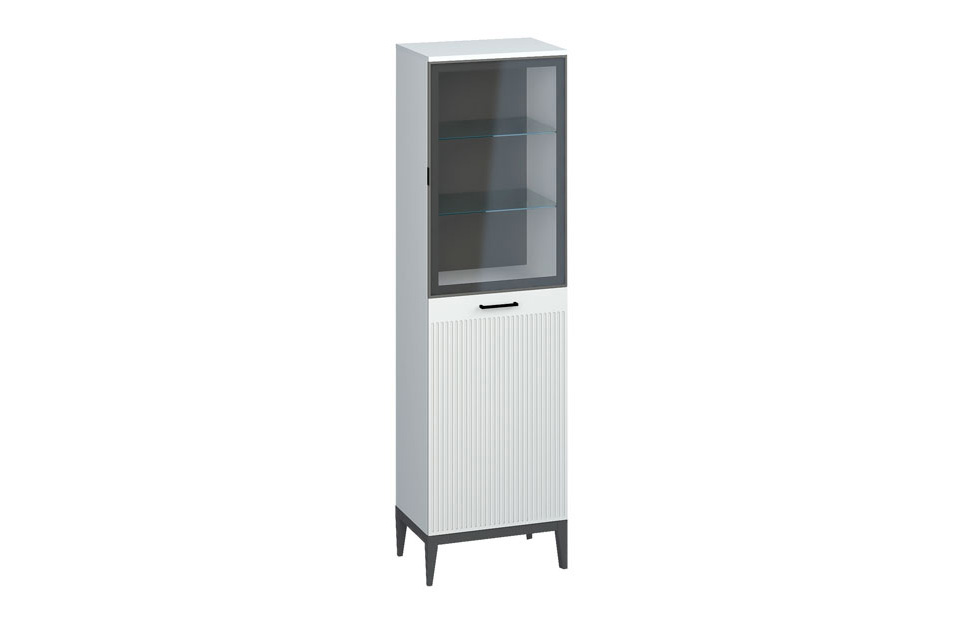 • Наполнение шкафа: верхний отдел с двумя стеклянными полками, нижний отдел с двумя полками из ЛДСП.