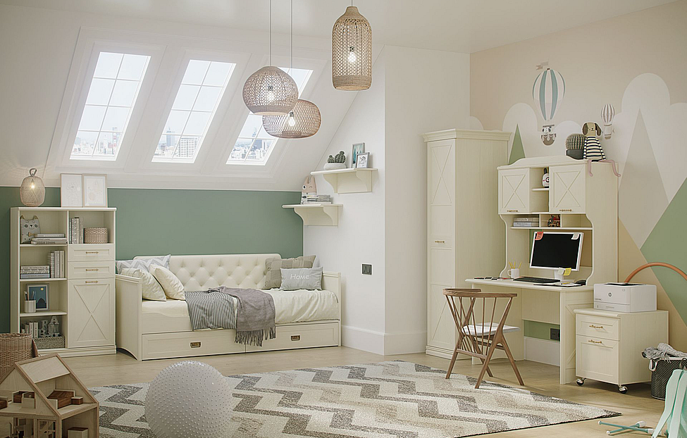 • Коллекция Кантри — это атмосфера домашнего уюта и тепла. Детская Кантри отправляет нас в безмятежный загородный дом, наполненный солнечным светом, спокойствием и гармонией;