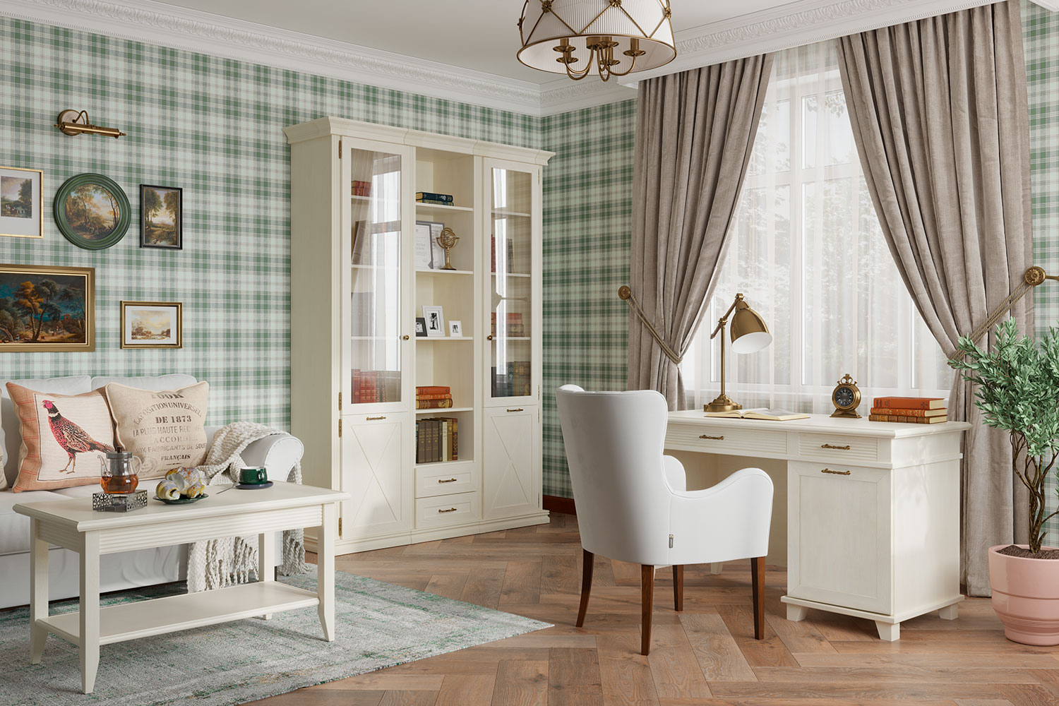 • Самые светлые мысли и идеи придут к вам в кабинете, оформленном с помощью коллекции Кантри. Ведь окружающие спокойствие и безмятежность — залог позитивного мышления;