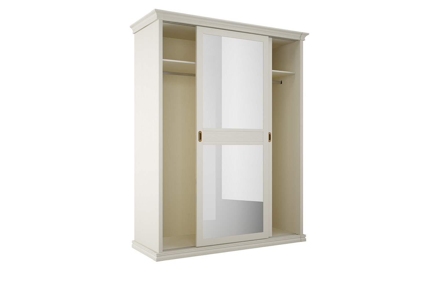 - Шкаф двустворчатый с зеркальными раздвижными фасадами, укомплектованный полками и штангами, отдельностоящий;
