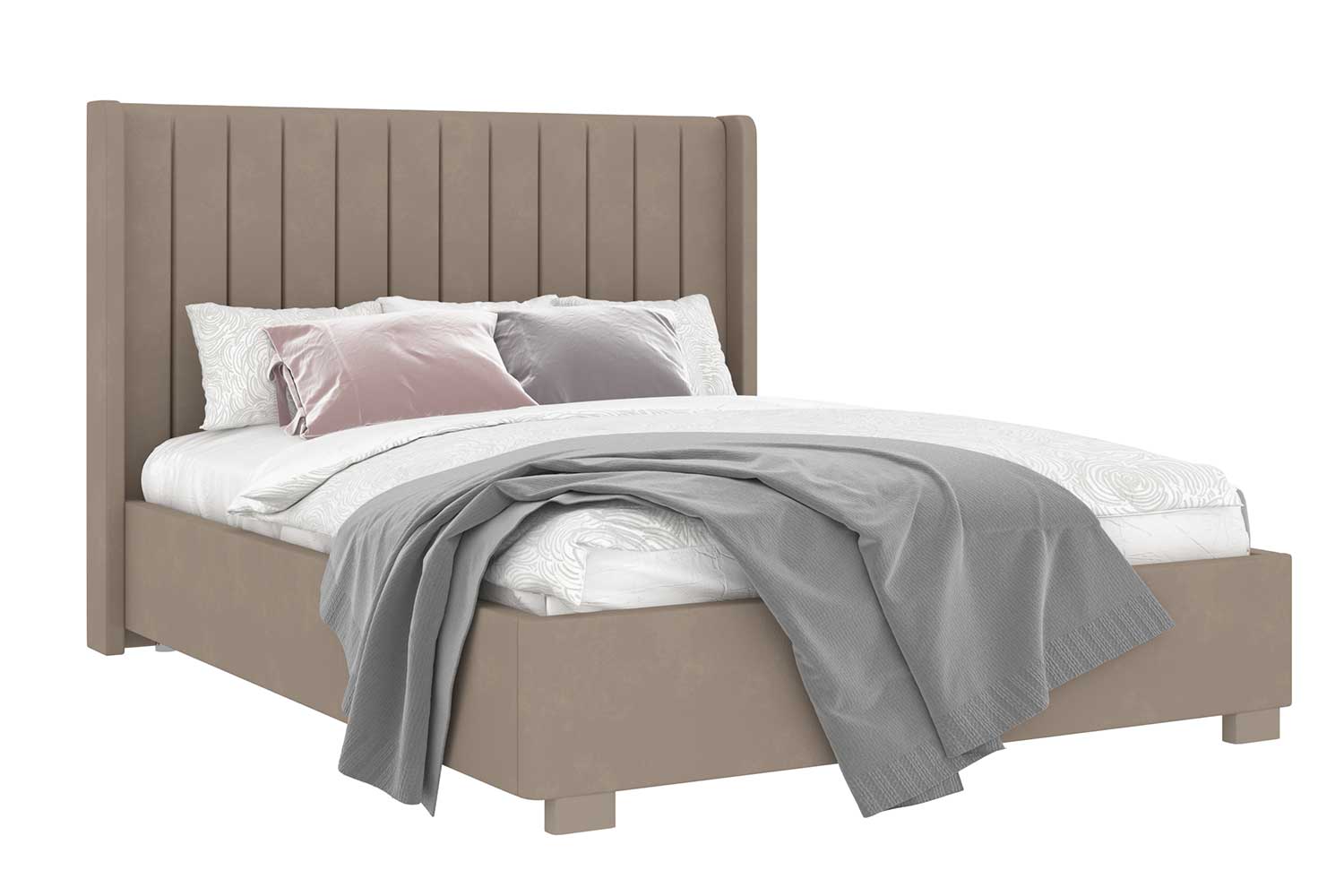 - Кровать выполнена в ткани велюр, коричневый (Omega 14);
