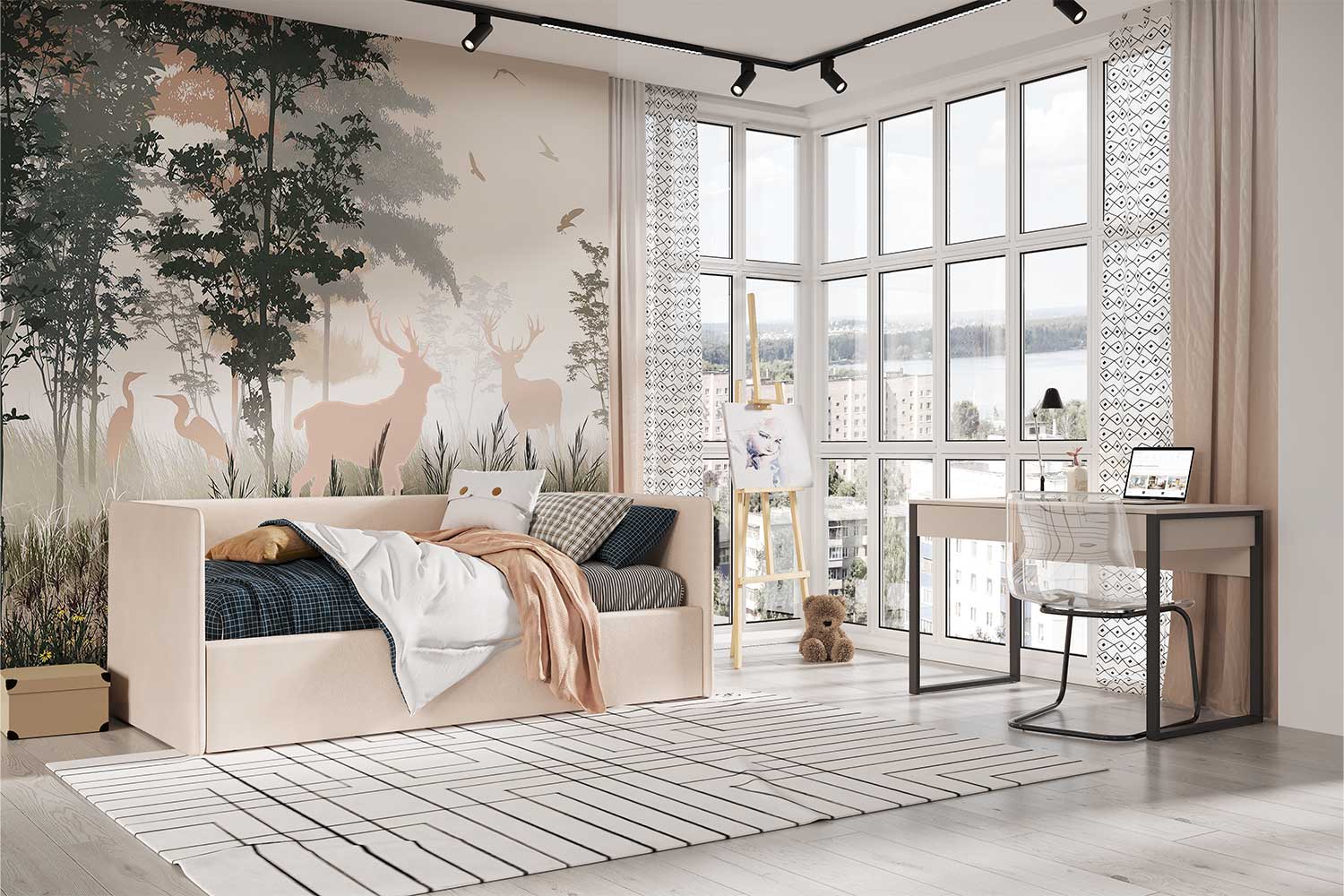 – описание: размер спального места 90 х 190 см, цвет бежевый, стиль современный, материал обивки велюр.