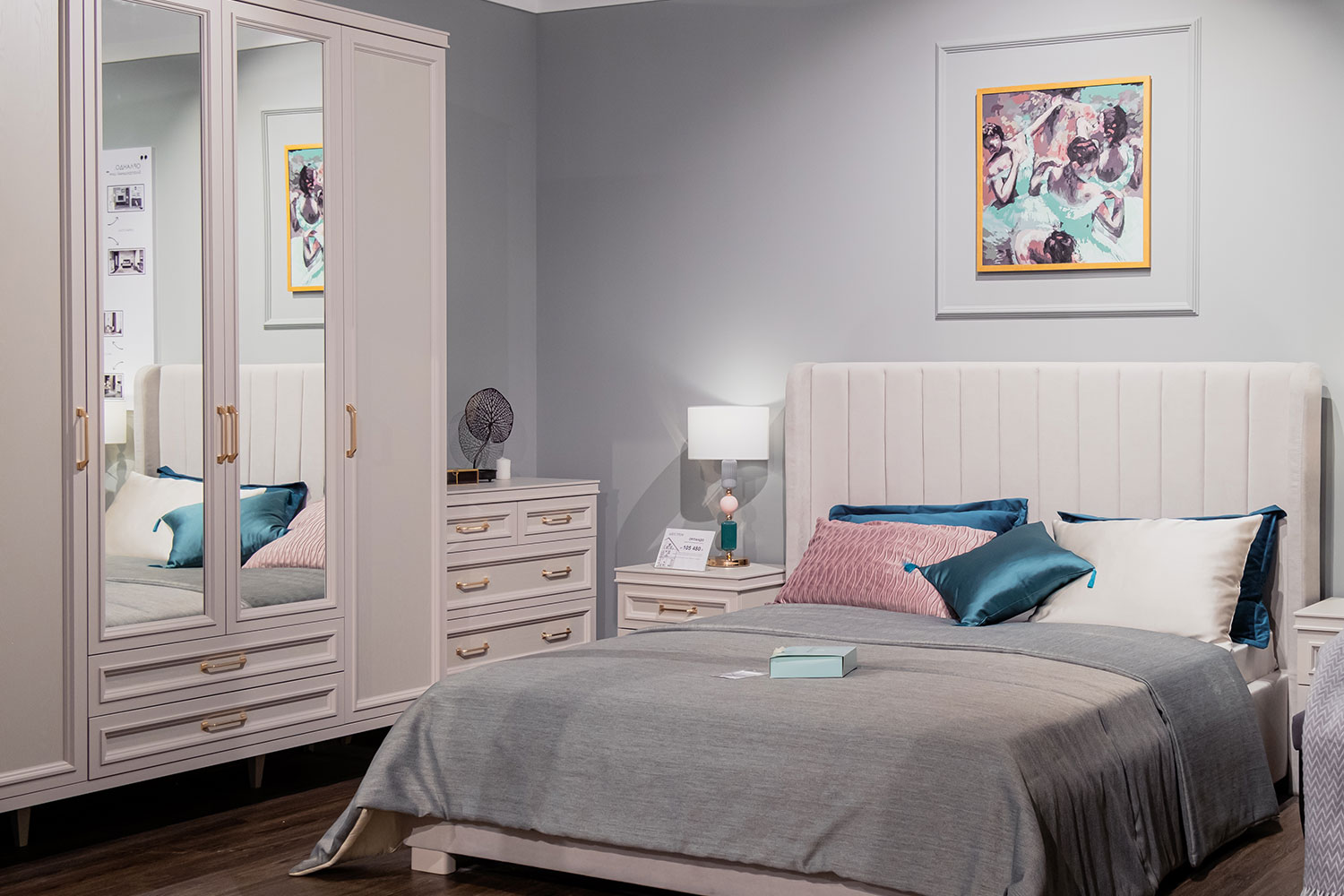 - Изголовье декорировано вертикальными линейными утяжками. Имеет эргономичную форму и размер;