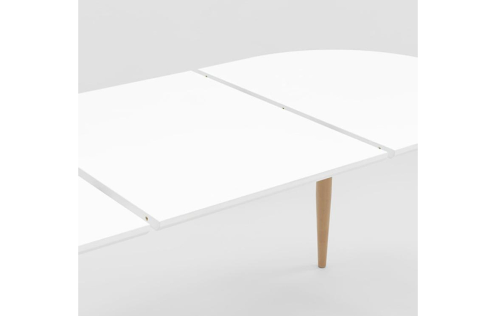 Цвет столешницы – белый, ножки металлические, покрашены в цвет светлого дерева.
