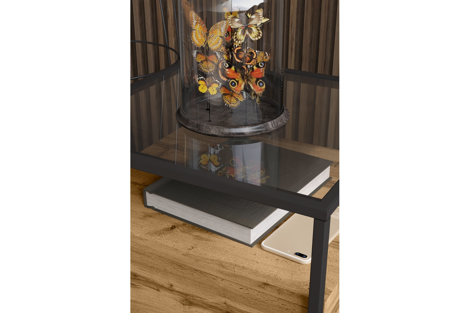 Прикроватная тумба Эйд выполнена в современном лаконичном стиле и уместно дополнит интерьер гостиной. Стильная тумба приковывает внимание, прежде всего, своим исполнением: комбинацией используемых материалов. Стеклянная столешница из тонированного закаленного стекла в сером цвете дополнена полкой и ящиком для удобного хранения подручных вещей с системой открывания PUSH-TO-OPEN. А прочный металлический каркас из профиля толщиной 15 мм обеспечивает высокую прочность и устойчивость.