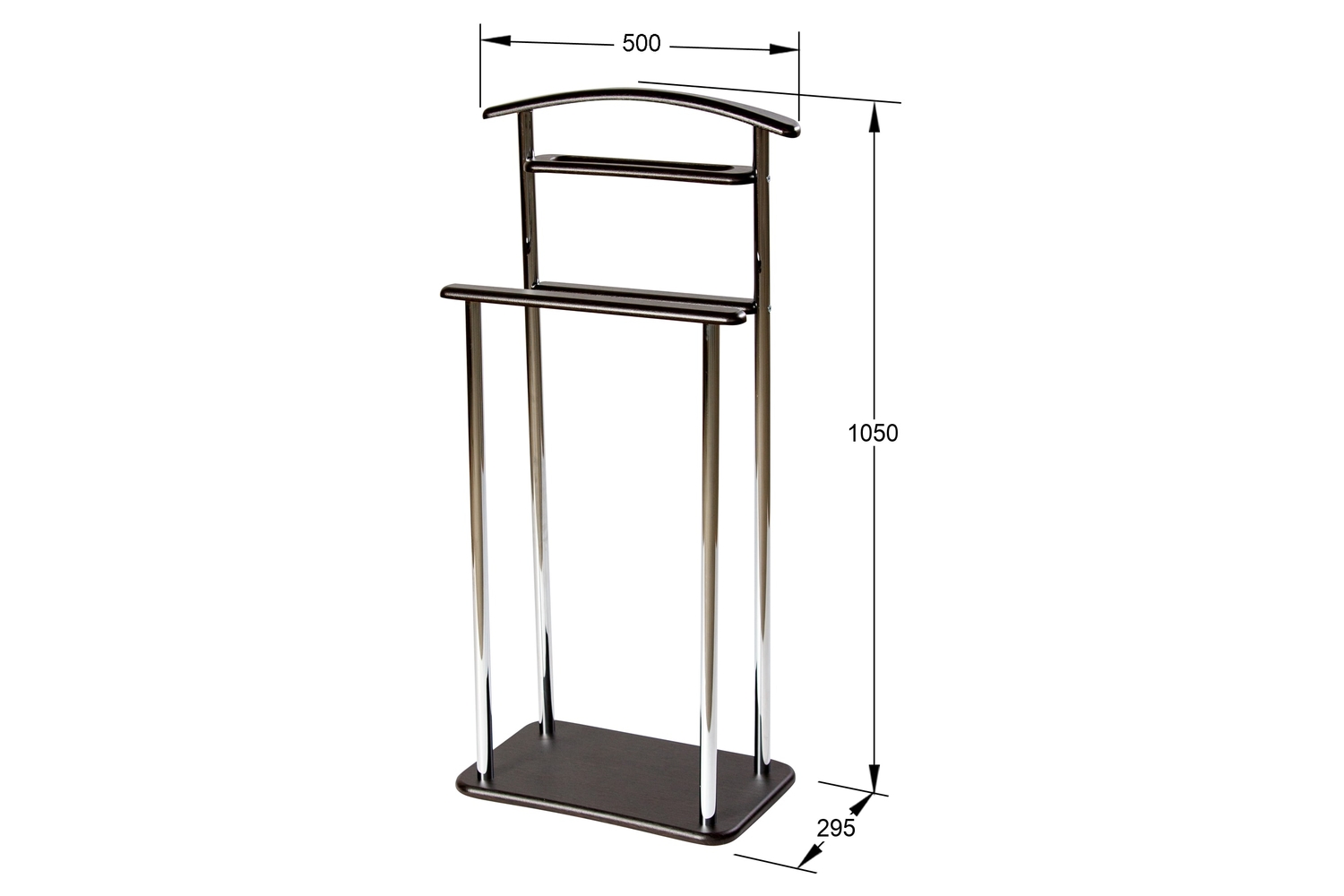Благодаря наличию двух планок для брюк и полочки для аксессуаров данный вариант вешалки отлично подойдет для аккуратного хранения вещей.