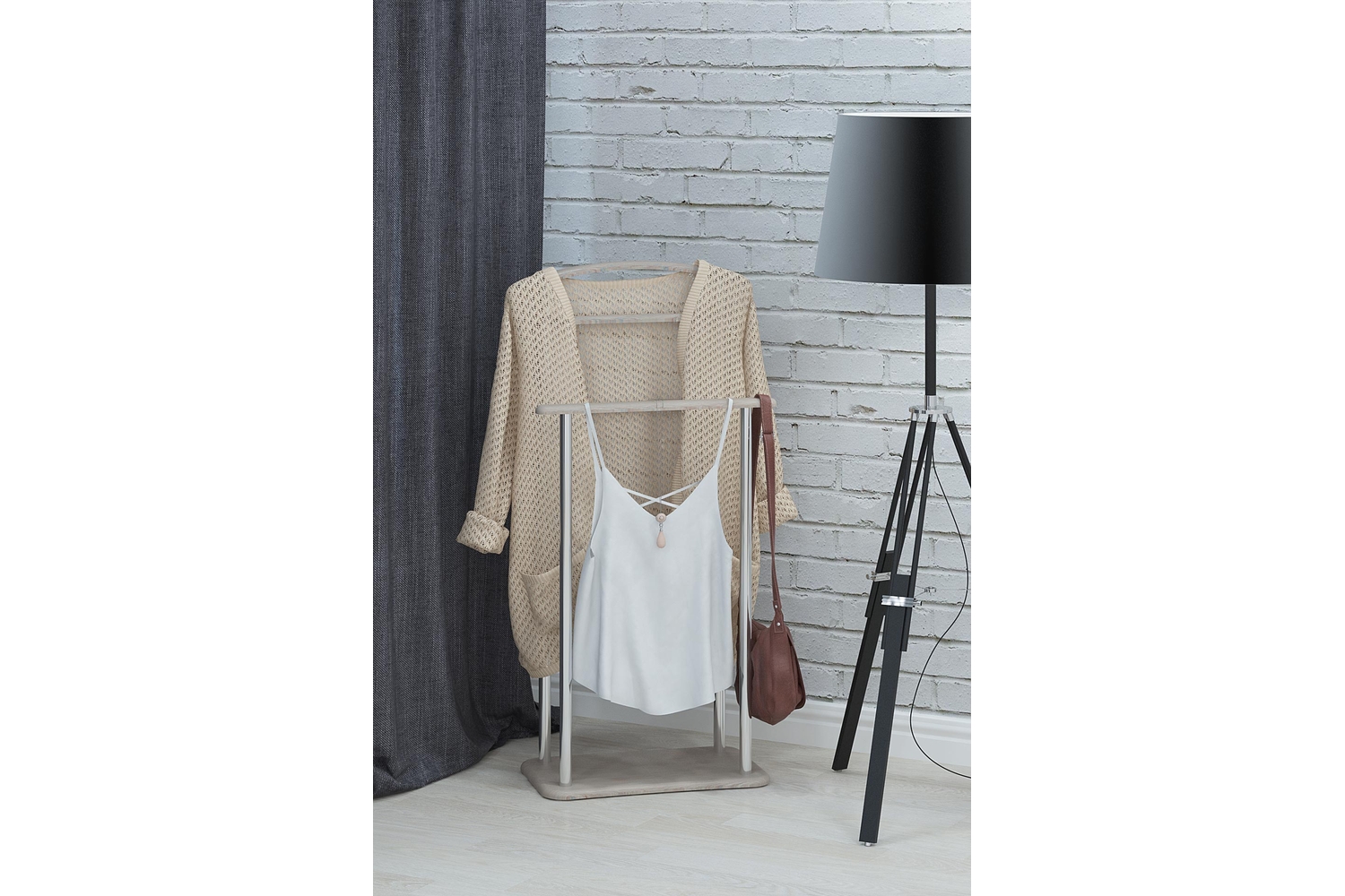 Благодаря наличию двух планок для брюк и полочки для аксессуаров данный вариант вешалки отлично подойдет для аккуратного хранения вещей.