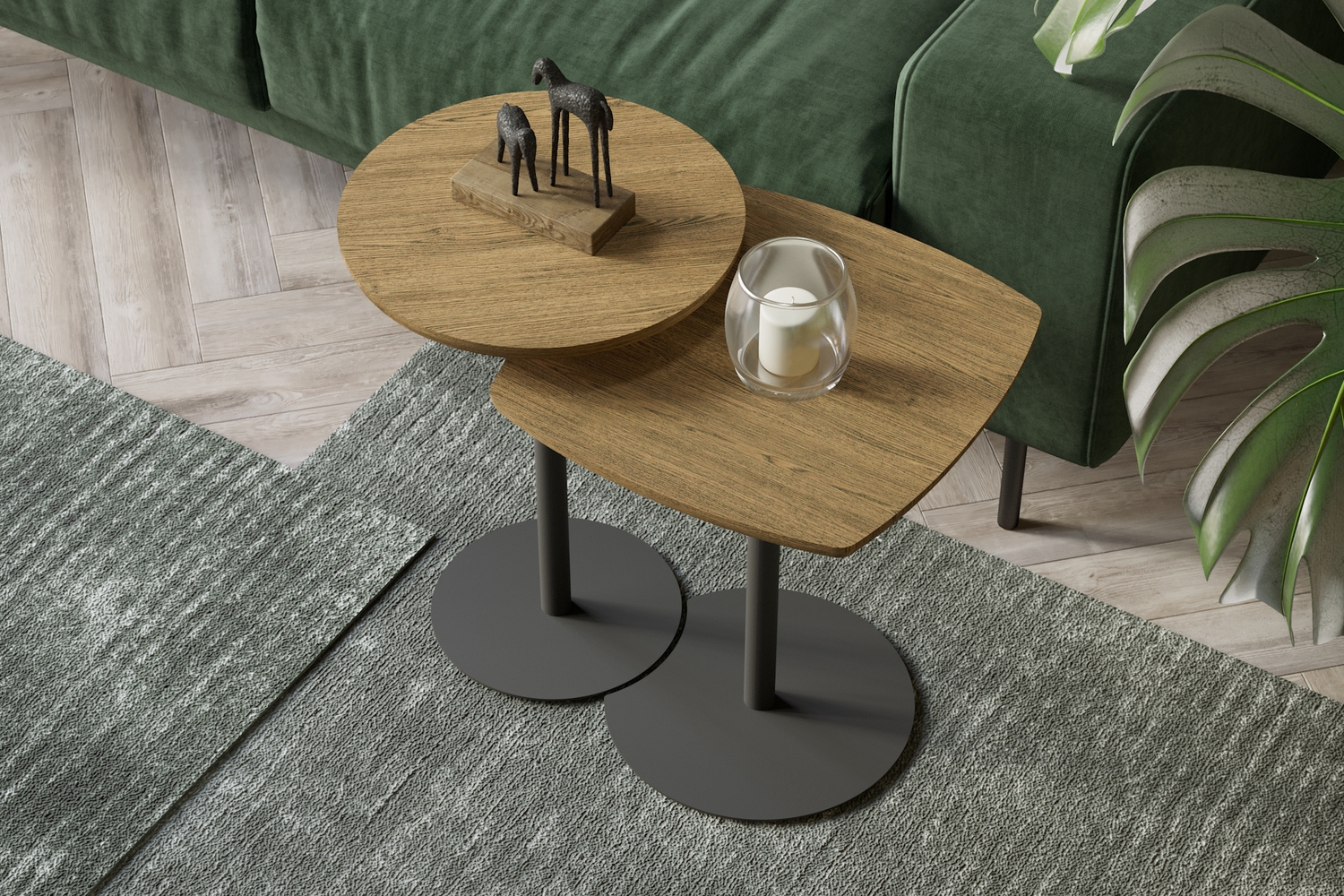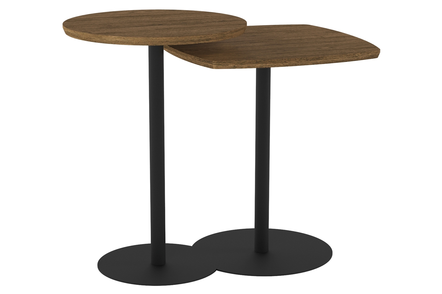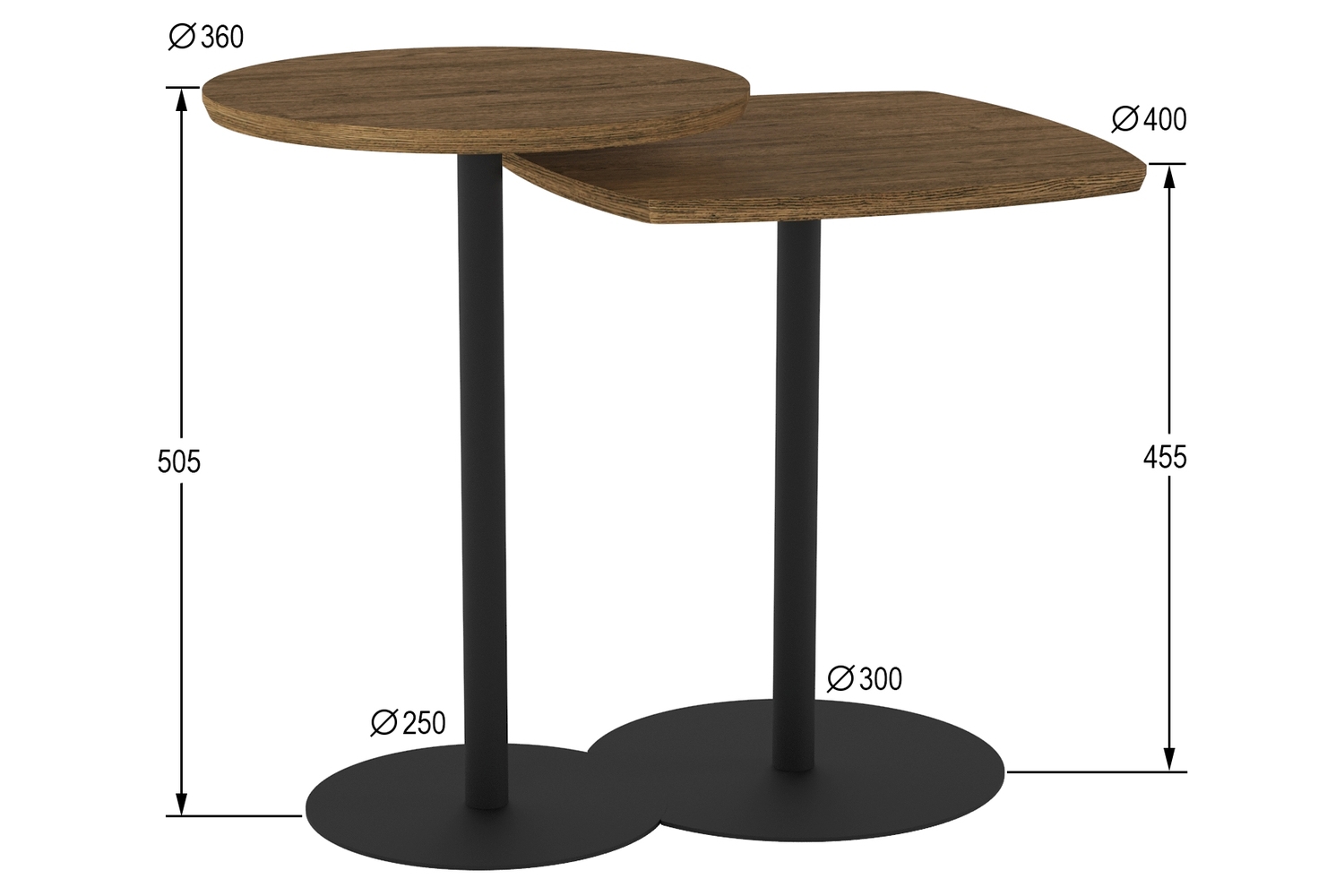 Комплект столов журнальных представляет собой гармоничную и функциональную композицию из двух столиков разной высоты и формы, расположенных один над другим. Дизайнерский прием — способность разместить данную модель любым комфортным способом или использовать каждый из них по отдельности. Центральная опора каждого из столиков оканчивается круглым основанием, изготовленным из прочного металла. Благодаря своей строгой элегантности и универсальности журнальные столики легко комбинируются с мебелью в современном стиле. В комплект входит вся необходимая фурнитура и удобная инструкция для сборки. Максимальная нагрузка до 5 кг.