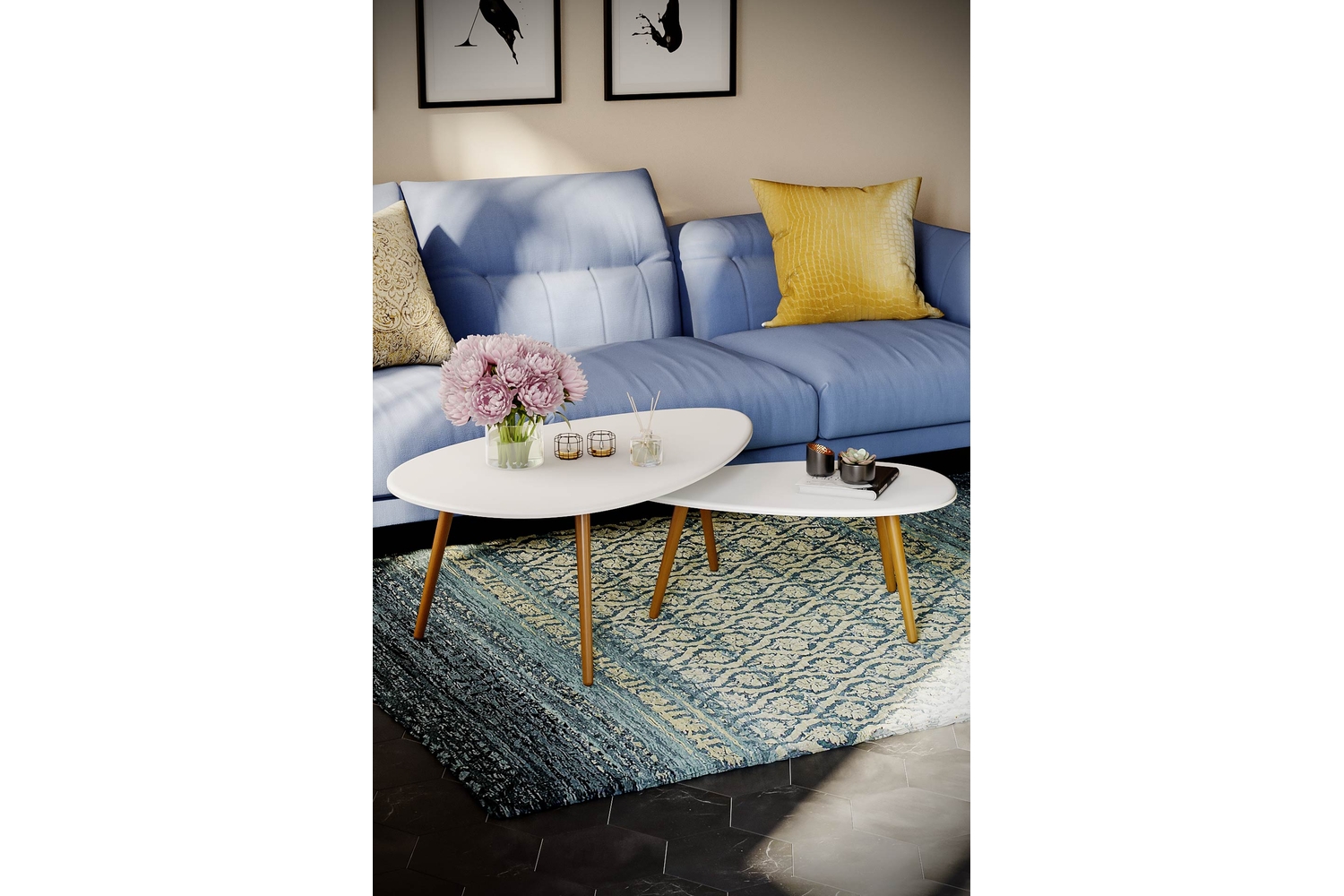 Журнальный стол «Твин» — нестандартное решение для вашего интерьера. Два столика разных размеров и высоты соединены в единую композицию в скандинавском стиле. В дизайне использована простая геометрия столешниц в белом цвете в сочетании с деревянными опорами. Столик — настоящая находка для любителей функциональной мебели. Его с легкостью можно перемещать, комбинировать между собой и с другими предметами мебели, позволяя воссоздать атмосферу истинного комфорта и удобства.
