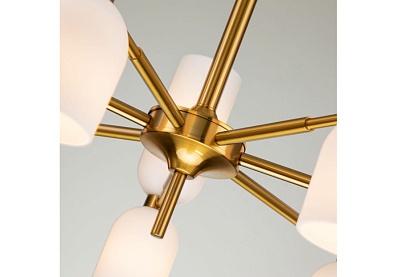 Подвесная люстра коллекции Amusing с белыми выдувными плафонами и латунным каркасом. Двойные плафоны оригинальной формы и разной высоты хорошо рассеивают свет ламп, направленных вверх и вниз. Латунная коллекция станет красивым дополнением к классическому интерьеру. Высоту люстр можно менять благодаря составному центральному штоку.