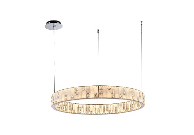Конструкция люстр в виде колец на тросовых подвесах добавит в интерьер особый шарм и легкость. Хромированная отделка придает этим светильникам современный вид и отражает свет, создавая игру бликов и отражений. Декор в виде тонких пластин из белого мрамора придает изысканный и шикарный вид, особый блеск и нежность. Прозрачные вставки из хрусталя добавляют дополнительную яркость и контрастность. Люстры из этой коллекции создают изумительное освещение и станут прекрасным украшением вашего интерьера. Они идеально впишутся в современный дизайн гостиной, столовой или спальни.
