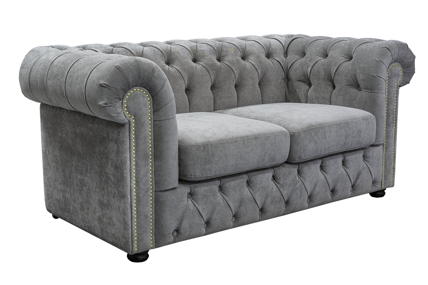 Яркая харизматичная модель украсит интерьер в стиле постмодернизм, ретро, эклектика. Традиционные элементы английской классики — подлокотники в виде свитков, низкая спинка, стяжка «капитоне», декоративные гвоздики — удивительным образом гармонируют с серым оттенком обивки. Качественный мебельный микровельвет обладает изысканной, переливчатой фактурой, неприхотлив в уходе, устойчив к действию солнечного ультрафиолета. Отстрочка выполнена прочной армированной нитью.