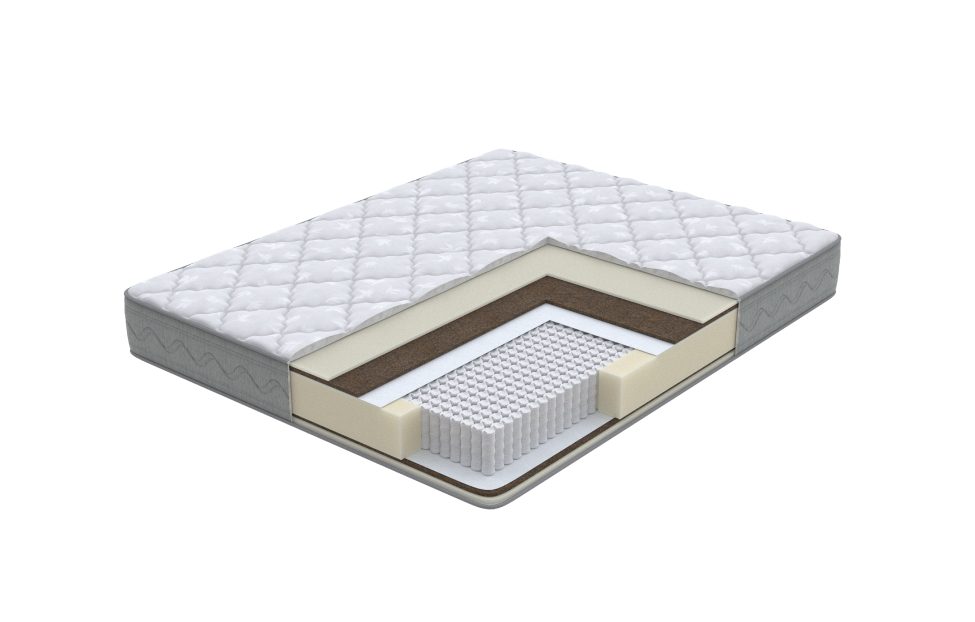 Би-кокос, Высокоэластичная пена Orto Foam, Пружинный блок «EVS 1000», Спанбонд, Эко ППУ (2 см)