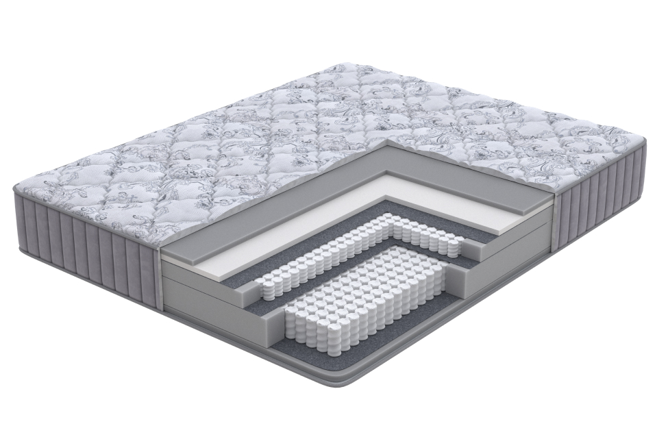 Высокий односторонний матрас премиум класса с низкой жесткостью, обеспечивает неповторимый уровень комфорта. Благодаря современным материалам с функцией памяти, матрас способен подстраиваться под индивидуальные особенности вашего тела. В основе матраса уникальная система из двух блоков независимых пружин с повышенным ортопедическим эффектом. Нижний пружинный блок состоит из 512 независимых пружин, он обладает ортопедическими свойствами и берет на себя большую часть нагрузки. Верхний блок состоит из 1000 пружин на спальное место, которые равномерно распределяют нагрузку и обеспечивают точечную поддержку тела.