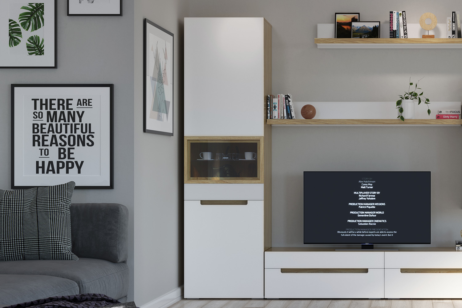 – описание: назначение для гостиной, цвет швейцарский вяз, белый, размер 213.2x60.1x41.6 см, стиль современный, минимализм.
