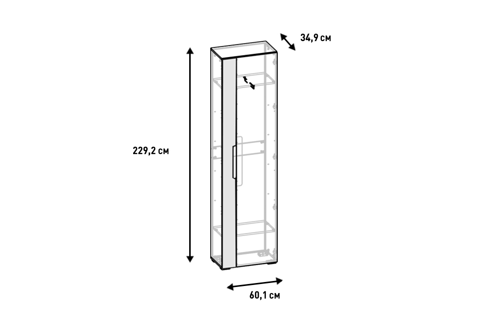 – описание: цвет швейцарский вяз, белый, стиль современный, минимализм, размер 229.2x60.1x34.9 см, назначение для одежды.