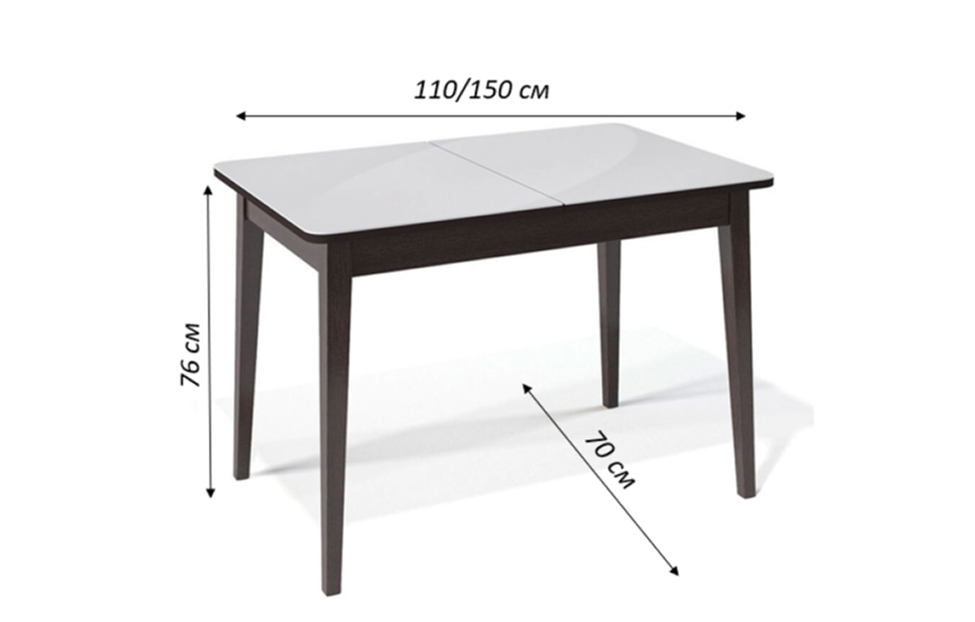 Стол обеденный Орпен квадратный раздвижной 1100М опоры венге, столешница - стекло белое глянец. Размер стола компактный и в то же время достаточно вместительный для ежедневного использования 4 человек, по каждой стороне достаточно места чтобы поставить 4 широких стула вокруг стола. Механизм раздвижения со стеклянной вставкой позволяет комфортно посадить еще 2 гостей. Компактный и очень функциональный стол, идеален для использования как на небольшой кухне, так и в качестве уютной обеденной зоны в гостиной. Столешница из стекла надежно защищает стол от влаги и горячего. Для данного стола применяется дорогое, просветленное стекло optiwhite которое передает чистый, яркий цвет без зеленого бутылочного оттенка.