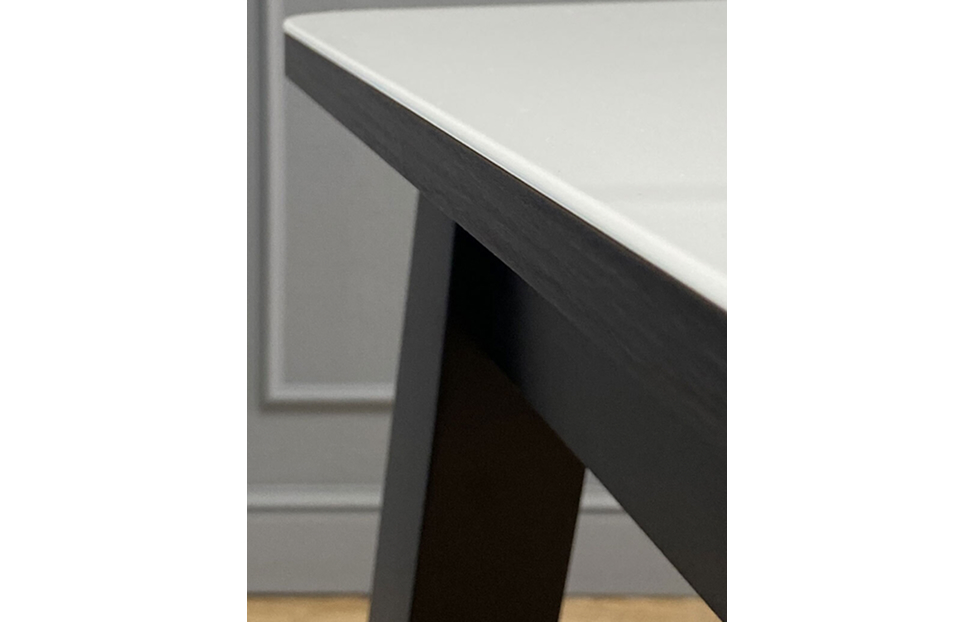 Столешница из стекла надежно защищает стол от влаги и горячего. Для данного стола применяется дорогое, просветленное стекло optiwhite которое передает чистый, яркий цвет без зеленого бутылочного оттенка. Стекло надежно крепится к подложке из ЛДСП на герметик, распределенный по всей поверхности столешницы.