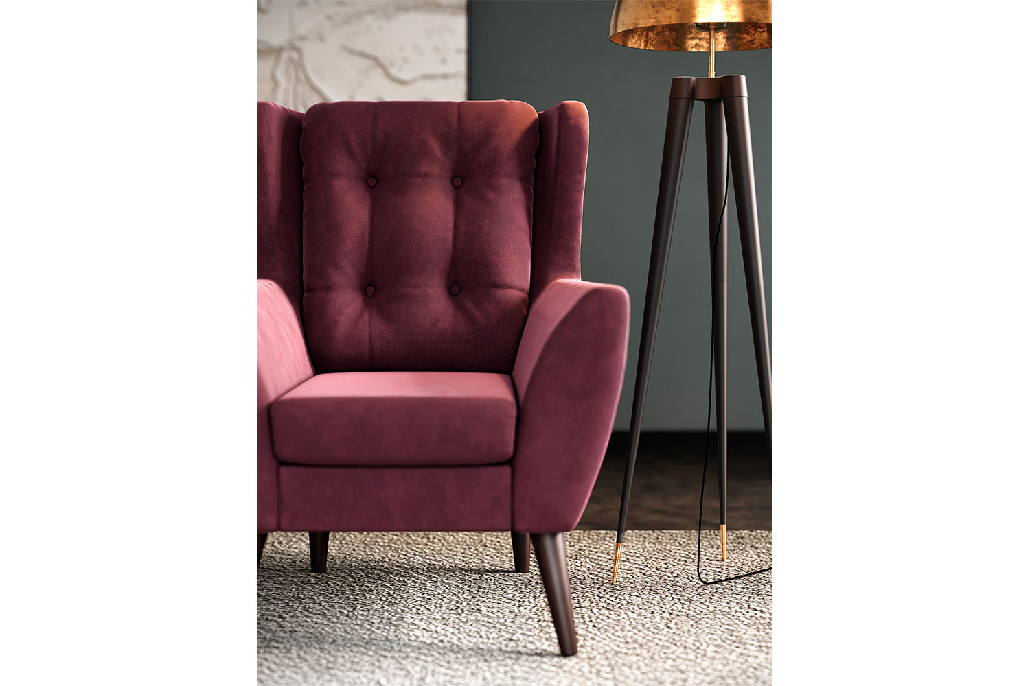 – описание: цвет марсала (velutto 15), размер 107x84x93 см, материал обивки велюр, стиль лофт.