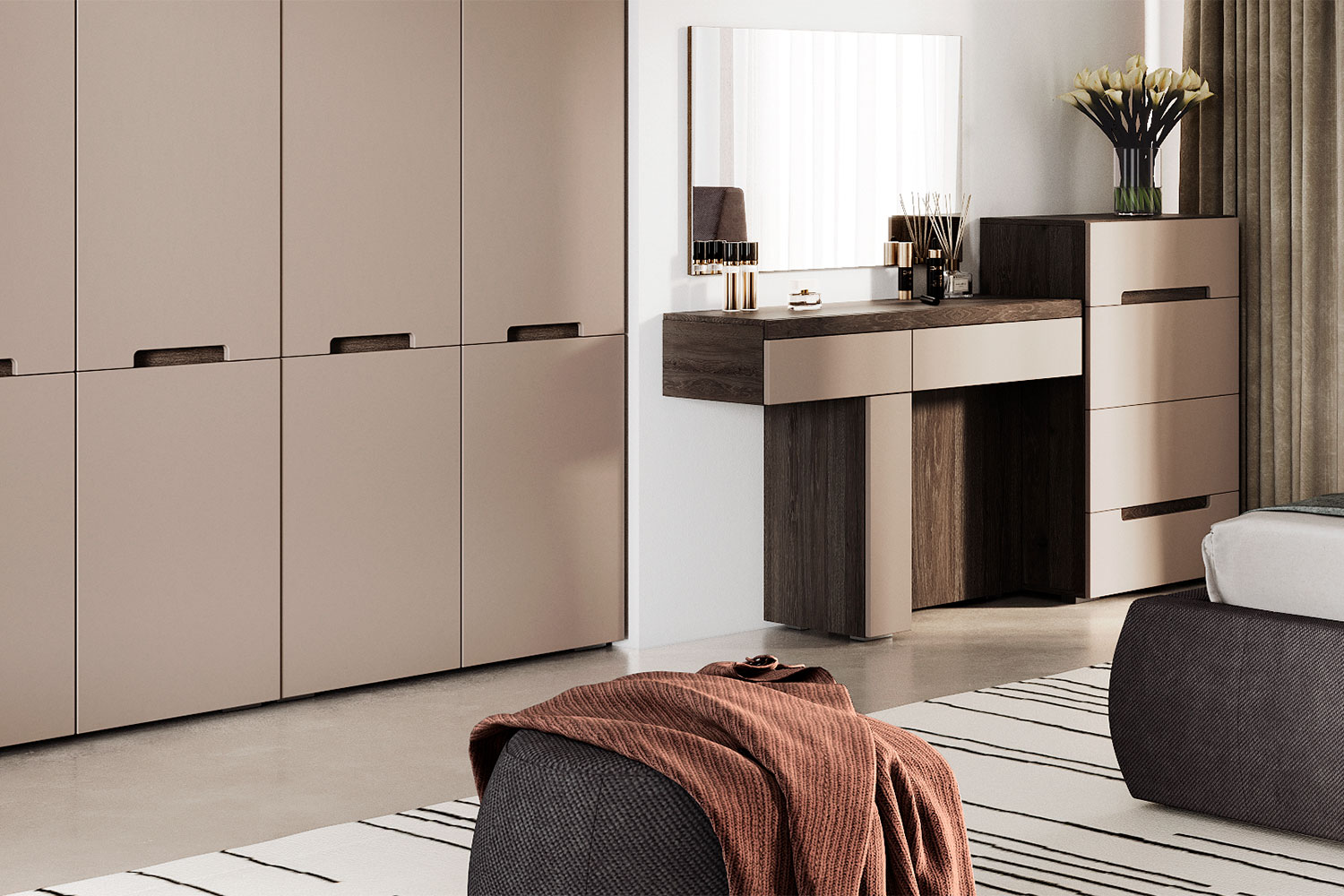 - Мебель выполнена в цветах «давос трюфель» и «бежевый»;